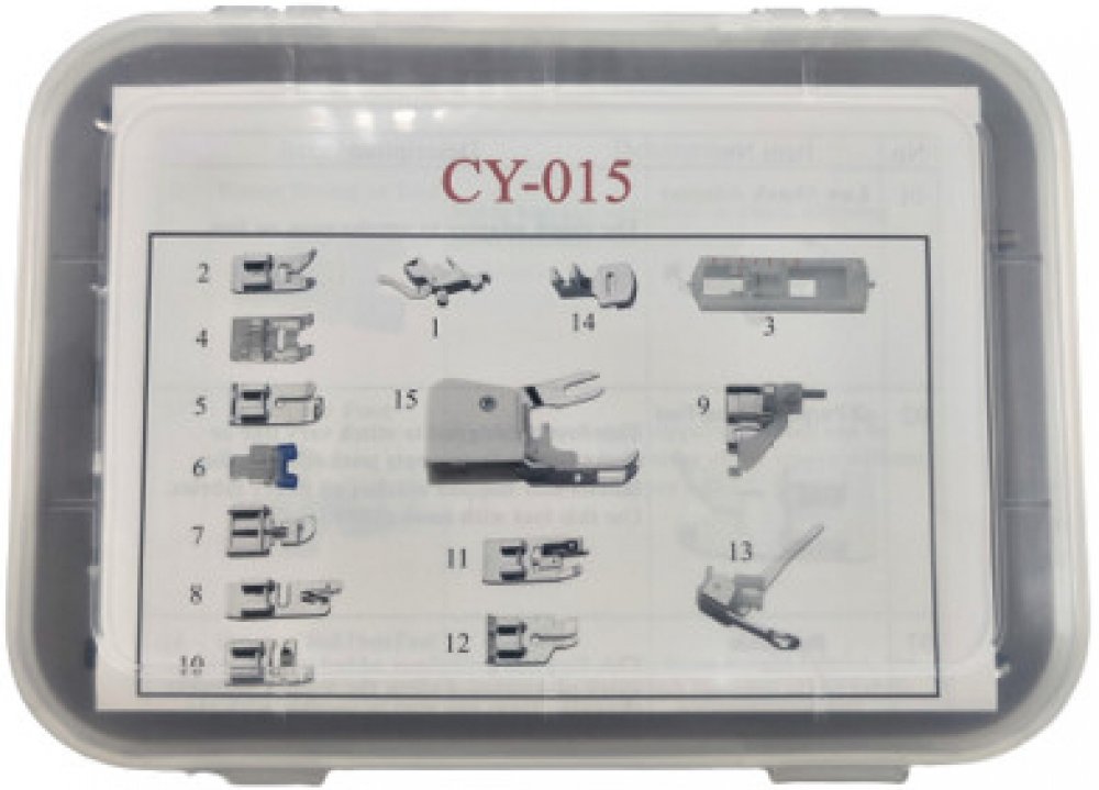Sada 15 ks patek je praktická sada 15 ks nejpoužívanějších patek značky Lucznik. Patky jsou vhodné pro šicí stroje Lucznik nové modelové řady, vyrobené po roce 2006. Jedná se o ilustrační foto, vzhled patek se může lišit. Sada obsahuje: Držák patek nízký Patka základní pro běžné šití (běžně umístěna na stroji) Patka na obšívání knoflíkových dírek (4-kroková) Patka vyšívací průhledná Patka pro rovn...