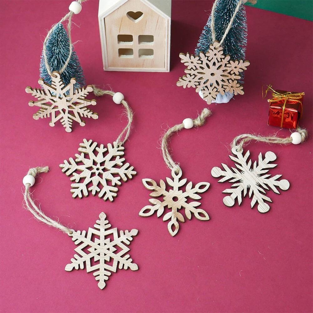 Sada 6 dřevěných vánočních ozdob sněhové vločky