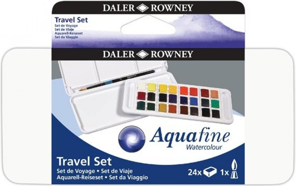Sada akvarelových barev Daler-Rowney cestovní box 24 x 1/2 pánvička + štětec