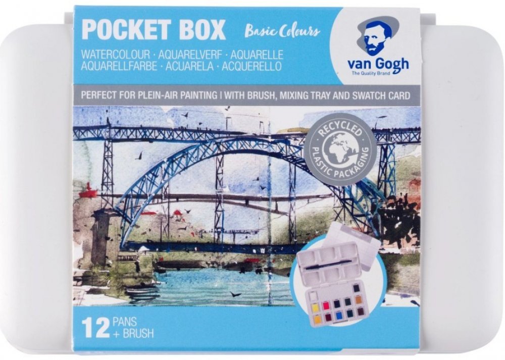 Sada je v plastové kazetě, která lze na cestách využít jako paleta pro míchání barev.