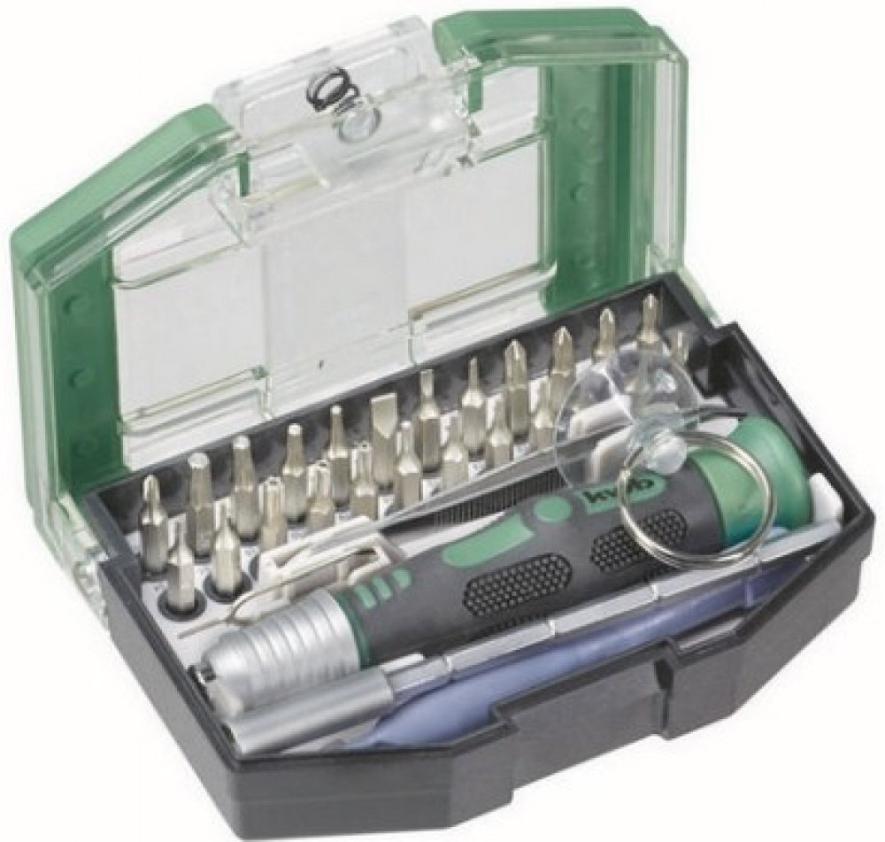 Bit box 30 pieces, Micro bits: Industrial quality TQ60, Drive 4 mm hex, Bit box made of sturdy plastic with practical belt clip, 2-K handle, All standard bits for game consoles, smart phone, Mac book, iPhone, especially also for iPhone5, digital cameras, glasses and model-making, Incl. suction cup and plastic lever for safe lifting of transparent panes of smart phones and opening of housings, SIM card opener