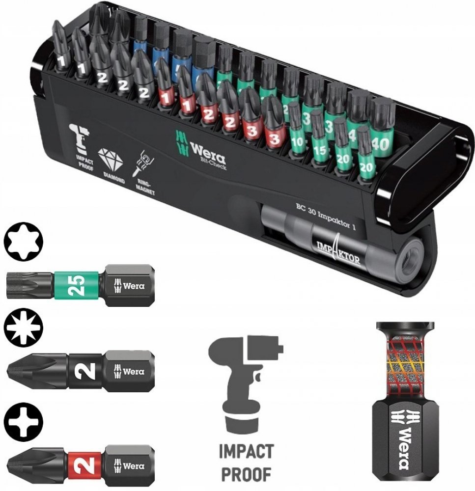WERA BC IMPAKTOR/30 BIT-CHECK. SADA BITŮ + DRŽÁK