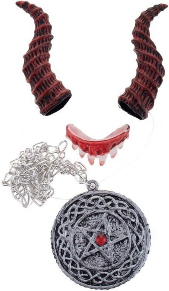 Sada čert démon rohy zuby a medailon