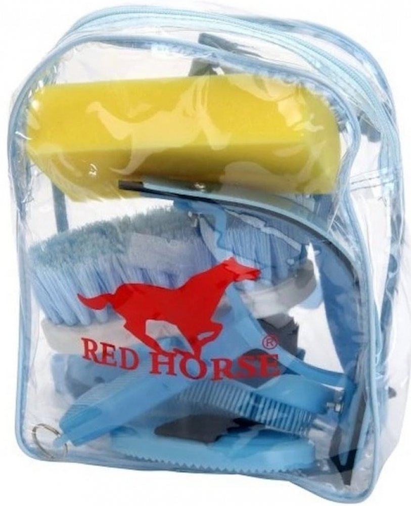 Obsahuje hřbílko masážní, hřbílko plastové, háček s kartáčkem, hřeben, rýžák, houba, stěrka na vodu. Různé barvy.
