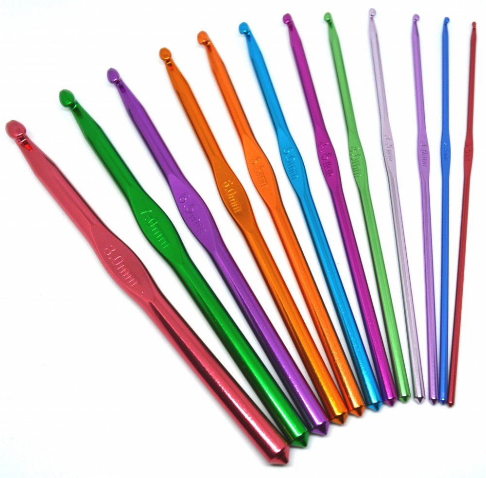 V jedné sadě naleznete 12 hliníkových háčků. Velikosti háčků: 2; 2,5; 3; 3,5; 4; 4,5; 5; 5,5; 6; 6,5; 7; 8 mm. Háčky mají různé barvy. Sadu háčků ocení každý, kdo rád tvoří různé výrobky. Díky této sadě nebudete muset shánět další velikost háčku na nový projekt. Sada háčků je vhodná také jako dárek.U každé příze je doporučená velikost háčku. Háček s nejnižším číslem je nejslabší, naopak háček s nejvyšším číslem je nejsilnější.