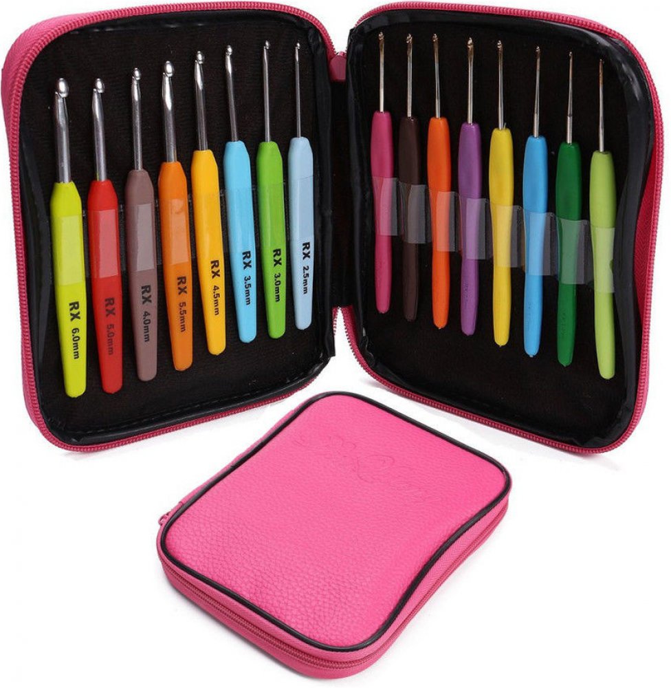 16 kusů háčků od velikosti 1 do 6 mm. V praktickém růžovém koženkovém pouzdře. Každý háček má ergonomickou plastovou ručku, háček je z galvanizovaného kovu. Krásný dárek pro milovnice háčkování.