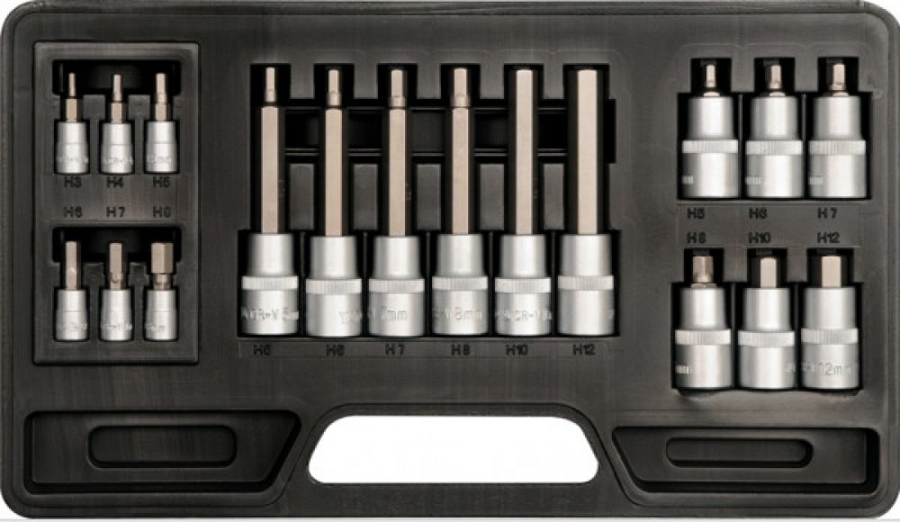 Sada hlavic 1/2" 1/4" bitů Imbus YATO 18 kusůSada hlavic 1/2" 1/4" bitů Imbus YATO 18 kusů Charakteristika:materiál: CRV6150/S2norma: DIN3120typ koncovek: HEXtvrdost (HRC): 58-62 Sada obsahuje:Hlavice imbus 1/4" délka 37 mm: H3 / 4 / 5 / 6 / 7 / 8Hlavice imbus 1/2" délka 50 mm: H5 / 6 / 7 / 8 / 10 / 12 Hlavice imbus 1/2" délka 100 mm: H5 / 6 / 7 / 8 / 10 / 12