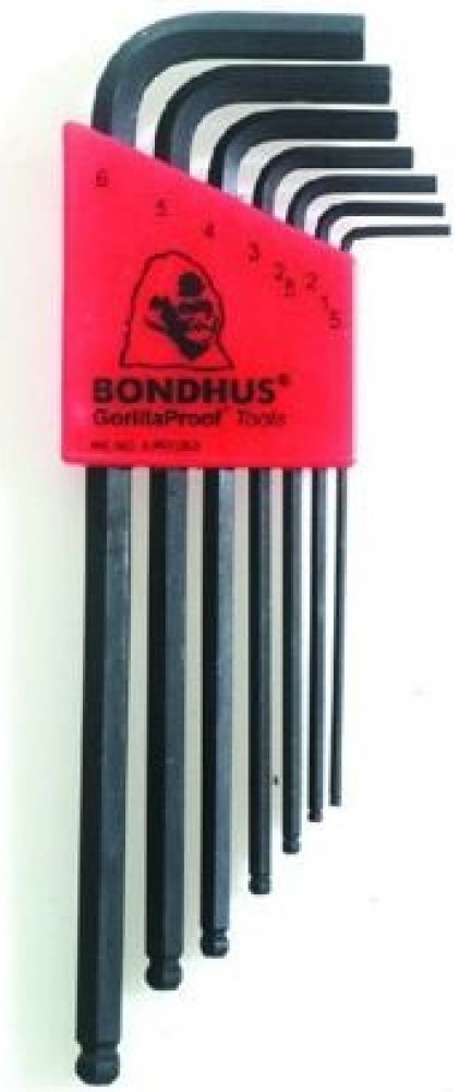 Klíče jsou vyrobeny z oceli Protanium, která je až o 20% pevnější než běžné druhy oceli. Kulové zakončení imbusových L-klíčů značky BONDHUS umožňuje práci pod úhlem až 25 stupňů. Sada je opatřena pouzdrem Bondhex. Každý klíč a pole sady je označeno rozměrem, což umožňuje rychlé, pevné a bezpečné uložení každého klíče. Klíče jsou v pouzdru uzamčeny pootočením, což brání jejich uvolnění. Pouzdro lze použít i při šroubování ke zvětšení páky. Rozměry: 1,5mm, 2mm, 2,5mm, 3mm, 4mm, 5mm, 6mm.