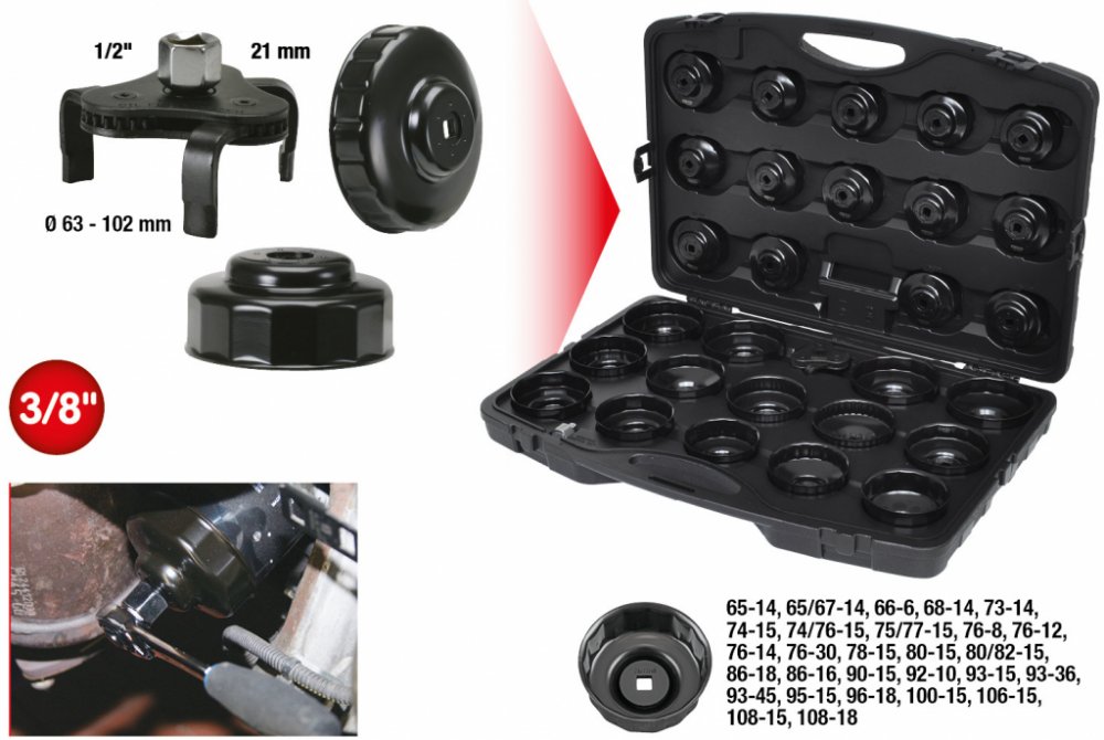 Souprava klíčů na olejové filtry 3/8", 30dílná