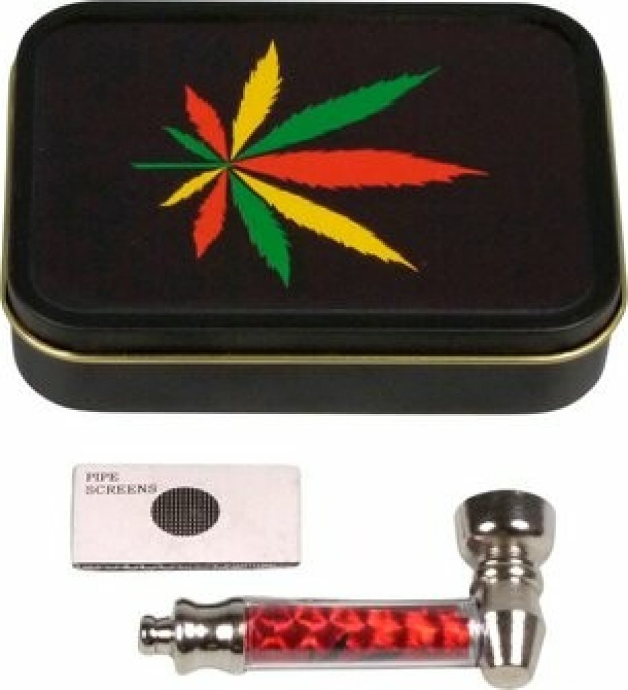 Sada kovové dýmky a sítka různé druhy v plechové krabičce