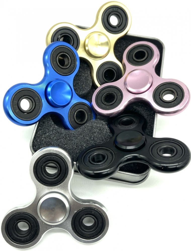 Výhodný set 4 kusů kovových Fidget Spinnerů.Spinnery jsou v barvě: ZLATÁ, STŘÍBRNÁ, MODRÁ, RŮŽOVÁSkvělá ložiska umožňují až 180 vteřin otáčení.Povrch spinneru je jemně rýhovaný.Naskočte na nejnovější vlnu zábavy a roztočte to s Fidget Spinnerem!Tato původně antistresová hračka se těší nebývalému zájmu všech věkových skupin a není se čemu divit.Tento model Fidget Spinneru je celokovový, takže jej ocení jak zkušenější spinneři, tak začátečníci, a to jak pro jeho skvělé vlastnosti, tak pro jeho odolnost.Každý spinner je dodáván samostatně v kovové krabičce s okénkem a molitanovým lůžkem, takže jedním nákupem vyřešíte rovnou pět originálních dárků.- Materiál: kov- Rozměry: průměr 7,4 cm- Váha: 60 gSet obsahuje:1xTříhlavý kovový Fidget spinner růžový1xTříhlavý kovový Fidget spinner modrý1xTříhlavý kovový Fidget spinner zlatý1xTříhlavý kovový Fidget spinner stříbrný