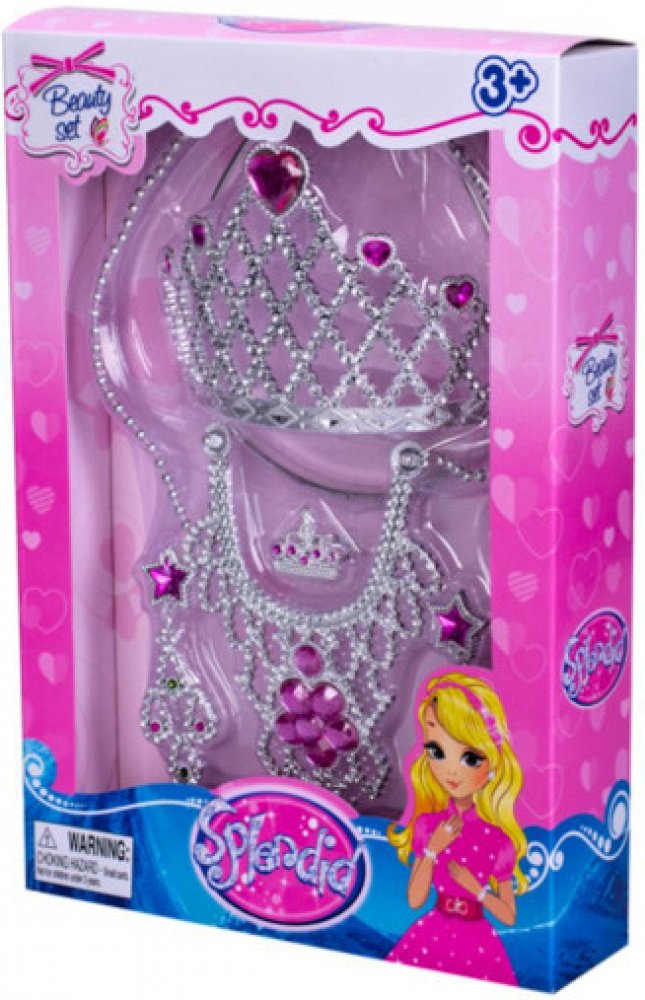 Sada krásy pro princezny obsahuje korunku, náhrdelník, prsten a náušnice v růžových barvách. Vše baleno v krabičce.Věk: 3+.