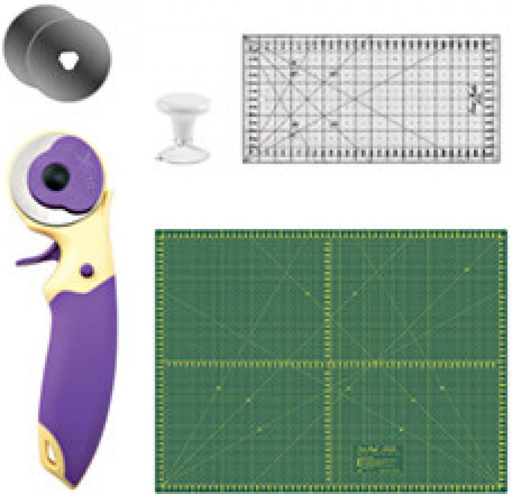 Sada výrazně usnadňuje řezání a umožňuje přesné měření řezaných prvků. Sada ve velikosti M určená pro malé a středně velké projekty a lidi, kteří se zabývají šitím a patchworkem.