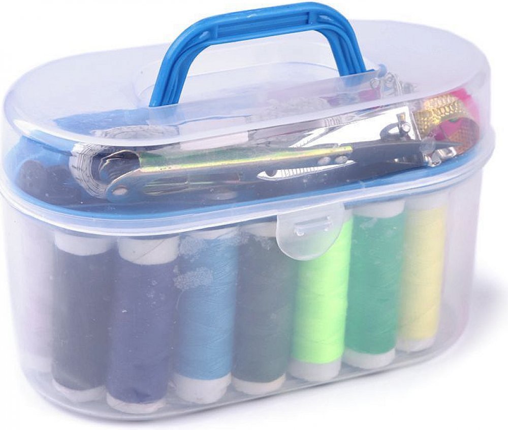 Sada na šití v praktickém plastovém boxu obsahuje všechny základní věci, které potřebujete k šití nebo opravení vašeho oblečení. Box se skládá ze dvou částí - z kufříku a odnímatelného patra uvnitř. Zapínání na boxu se může lišit.