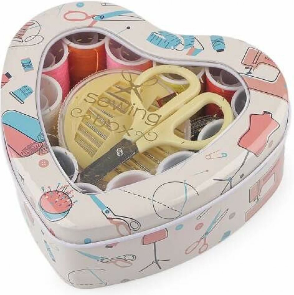 Sada na šití v plechové krabičce - béžové srdce