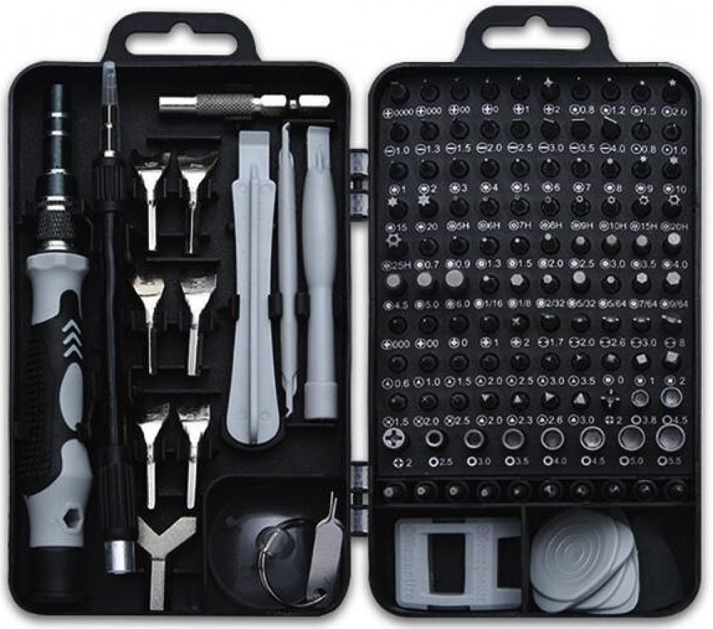 Hmotnost balení: 0,6 kgObjem balení: 18 x 11 x 7 cmCena za jednu saduMateriál: Chrom-vanadiová ocel, PPHmotnost: 514 gRozměry: 16,5 x 9,5 x 5,5 cmSada obsahuje 20 rozebíracích příslušenství:1 x rukojeť (plastová)1 x flexibilní prodlužovací hřídel1 x prodlužovací tyč1 x pinzeta3 x plastové páčidla2 x nástroje pro odstranění SIM karty1 x magnetizér / demagnetizér1 x přísavka6 x otevírací páky1 x držák bitů pro akumulátorový šroubovák1 x Y-tvarovaná rukojeť1 x paměťová podložka na šrouby115 šroubováky:Phillips: PH0000, PH000, PH00, PH0, PH1, PH2Ploché (Slotted): SL1.0, SL1.3, SL1.5, SL2.0, SL2.5, SL3.0, SL3.5, SL4.0Torx: T1, T2, T3, T4, T5, T6, T7, T8, T9, T10, T15, T20Torx s otvorem: T5H, T6H, T7H, T8H, T9H, T10H, T15H, T20H, T25HPentagon: P2??0.8?, P5??1.2?, P6??1.5?, P8??2.0?Hex: H0.7, H0.9, H1.3, H1.5, H2.0, H2.5, H3.0, H3.5, H4.0, H4.5, H5, H6Imperiální Hex: H1/16, H1/8, H2/32, H5/32, H5/64, H7/64, H9/64POZI: PZ000, PZ00, PZ0, PZ1, PZ2Tri-point: Y0.6, Y1.0, Y1.5, Y2.0, Y2.5, Y3.0, Y3.5Trojúhelníkové: ?2.0, ?2.3, ?2.6, ?3.0U-tvar: U1.7, U2.0, U2.6, U3.0, U8Čtverec: S0, S1, S2MID: W1.5, W2.0, W2.5SIM: 0.8, 1.0ICS: IN PH24mm zásuvky: M2.5, M3.0, M3.5, M4.0, M4.5, M5.0, M5.5, G3.8, G4.5ICS Zásuvka: PH2TAP: Ex6, Ex7, Ex8, Ex9, Ex10, Dr6, Dr7, Dr8, Dr9, Dr10Magnetický pickup bit: U5.0Kapesní klíč: 4#, 4.5#, 5#, 5.5#, 6#, 7#Tato profesionální sada obsahuje širokou škálu bitů a příslušenství pro různé opravy a montáže. Je ideální pro práci s různými typy šroubů a nabízí veškeré nástroje, které potřebujete pro přesnou a efektivní práci.
