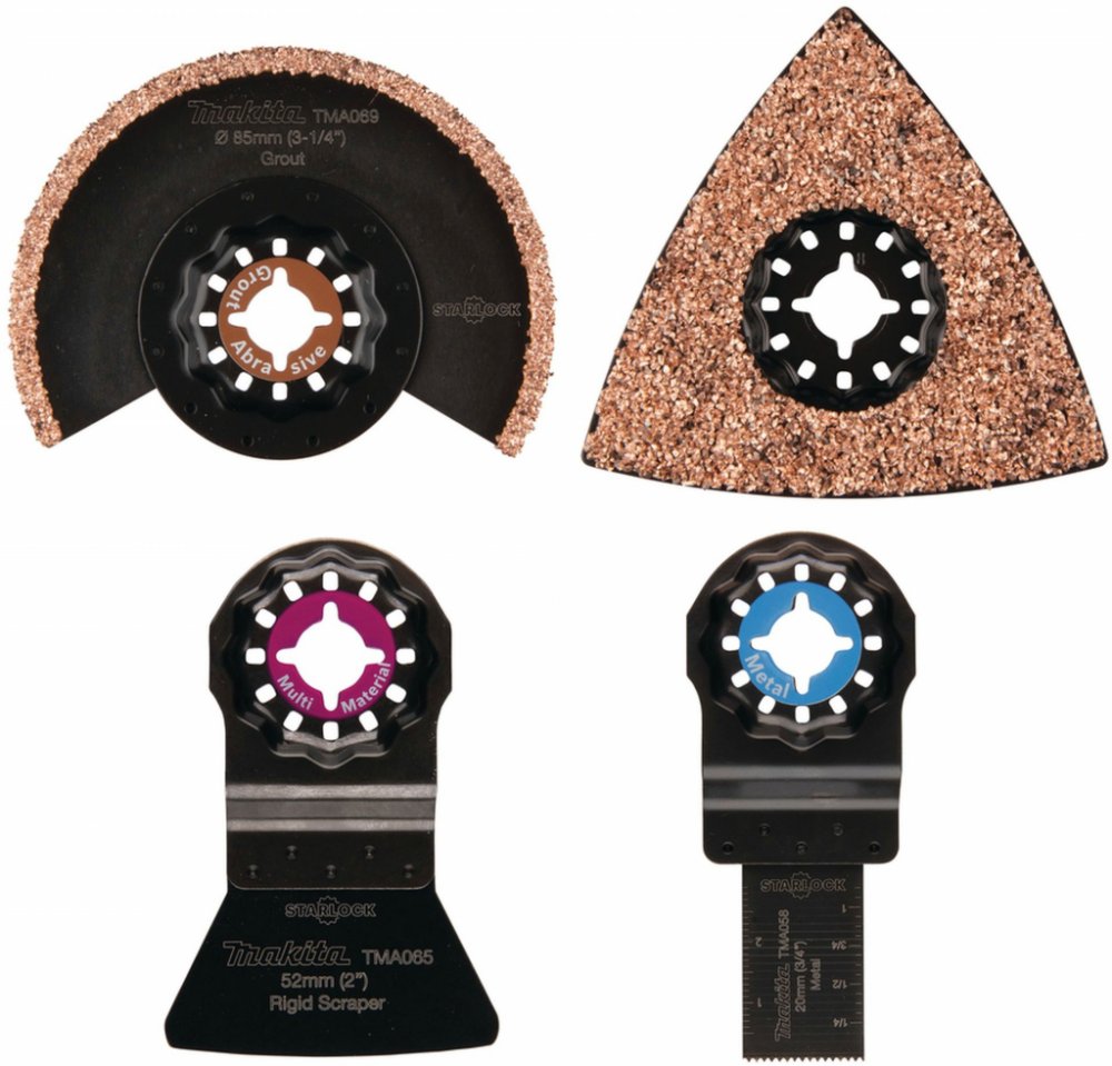 Sada obsahuje:• pilový list rovný 20 x 30 mm BiM B-64923• škrabku 52 x 26 mm HCS B-64989• pilový kotouč s tvrdokovem 85 mm G30 B-65028• brusnou desku s tvrdokovem 78 mm B-65062ilustrační foto