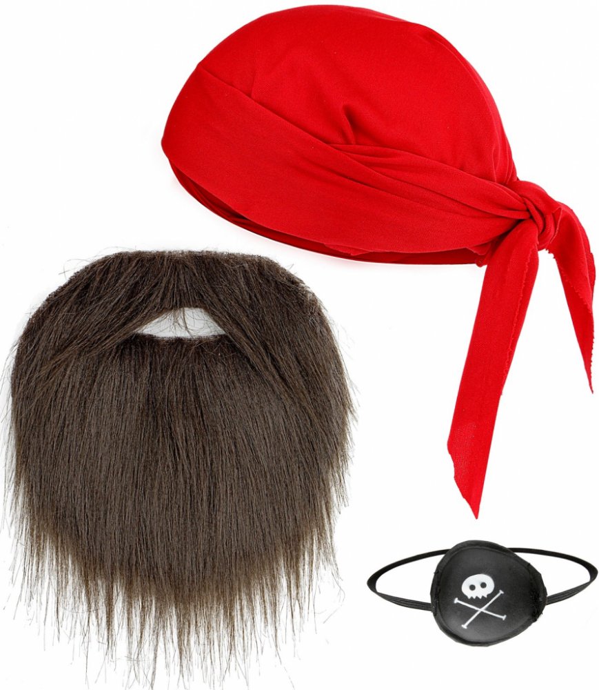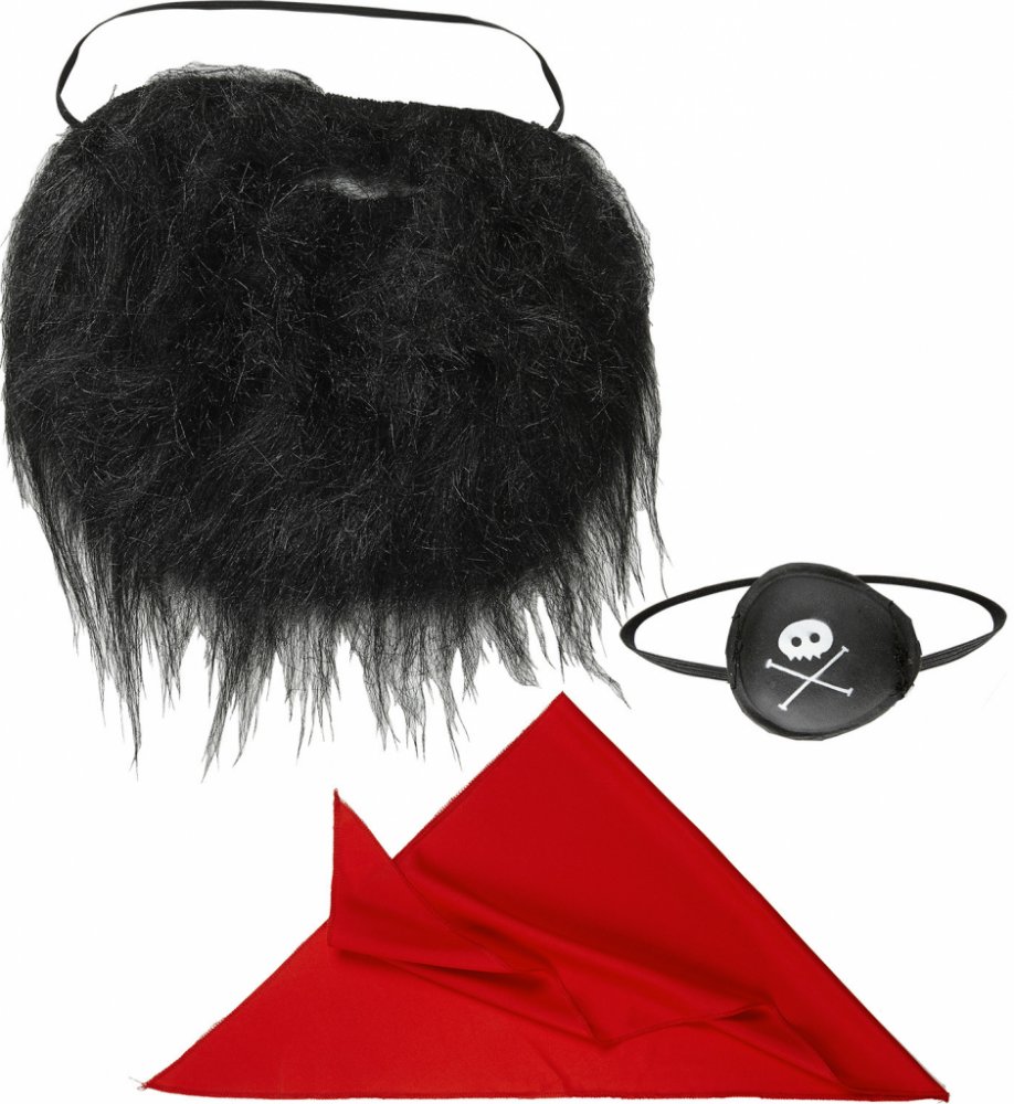Sada pirát-šátek, páska přes oko, vousy.