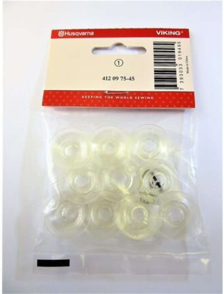 Sada plastových cívek 10 ks - prohlé - Husqvarna 105 je sada 10 ks plastových cívek z jedné strany lehce vypouklých a z druhé strany je výrazná prohlubeň pro šicí stroj Husqvarna 105. Rozměr cívky: 21.4 mm x 6 mm x 9.1 mm Šicí stroj Husqvarna model 105 byl vyráběn ve dvou typech a byly zde dva druhy chapačů = 2 druhy cívek. Ujistěte se dopředu, zda-li na Váš stroj tyto cívky pasují, aby nedošlo k chybnému objednání. Jedná se o dva typy: 1) oboustranně lehce vypouklá cívka - Cívka plast (sada 10 ks) č. 2 - Husqvarna 2) cívka z jedné strany lehce vypouklá a z druhé strany výrazná prohlubeň.