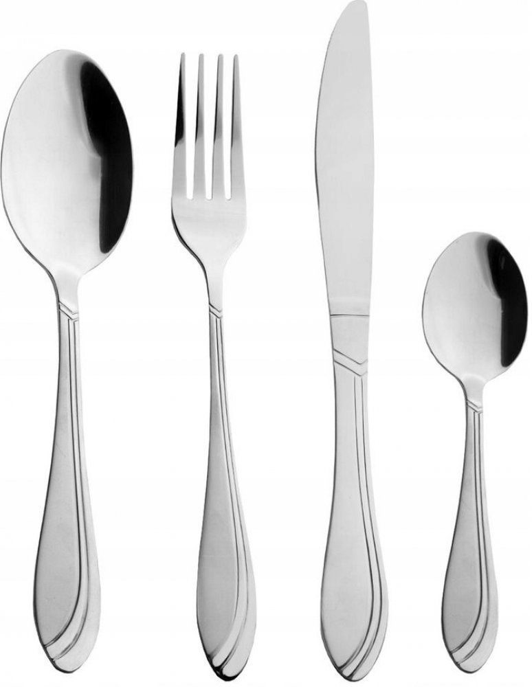 - Sada obsahuje: 6x lžíce (d. 20 cm), 6x vidlička (d. 21 cm), 6x nůž (d. 22,5 cm) a 6x čajová lžička (d. 14,5 cm)