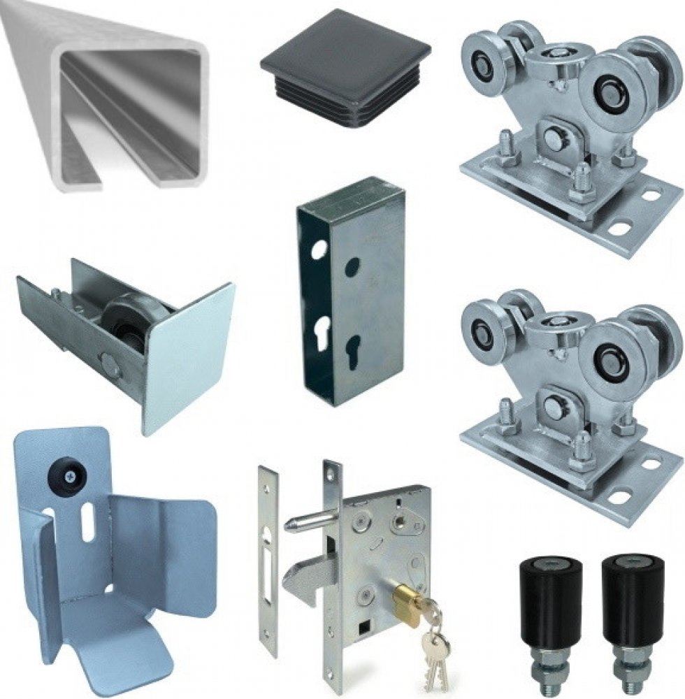 Sada obsahuje:1x hákový zámek s protikusem 1x kryt zámku 2x stavitelný kyvný zinkovaný vozík 70mm 1x dojezdové kolo na bránu 1x dojezdová kapsa 2x plastová záslepka C profilu 2x horní vodící rolna 6m nosného C profil...