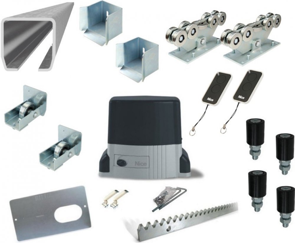 Kompletní sada pro výrobu automatické samonosné posuvné brány s průjezdem max. 11m a hmotností max. 1000kg, vybavená pohonem NICE THOR1500 od předního výrobce kvalitní bránové automatizační techniky.