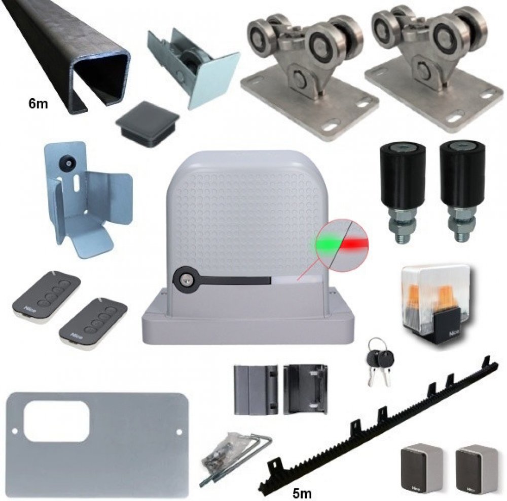 Kompletní sada pro výrobu samonosné posuvné brány s průjezdem max. 4,5m a hmotností max. 350kg, vybavená pohonem NICE RBS400KCE od předního výrobce kvalitní bránové automatizační techniky.