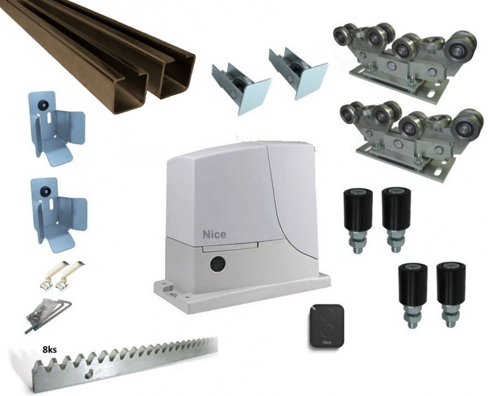 Kompletní sada pro výrobu samonosné posuvné brány s průjezdem max. 7m a hmotností max. 500kg, vybavená pohonem NICE ROX-1000 od předního výrobce kvalitní bránové automatizační techniky.