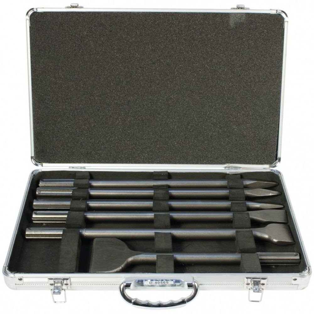 Díky inovativní technologii SDS-Max je zajištěna snadná a rychlá výměna sekáčů a špičáků, což významně zvyšuje efektivitu pracovního procesu a šetří čas při práci. Všechny nástroje jsou uloženy v odolném hliníkovém kufru, který zajišťuje bezpečné skladování a snadné přenášení celé sady.