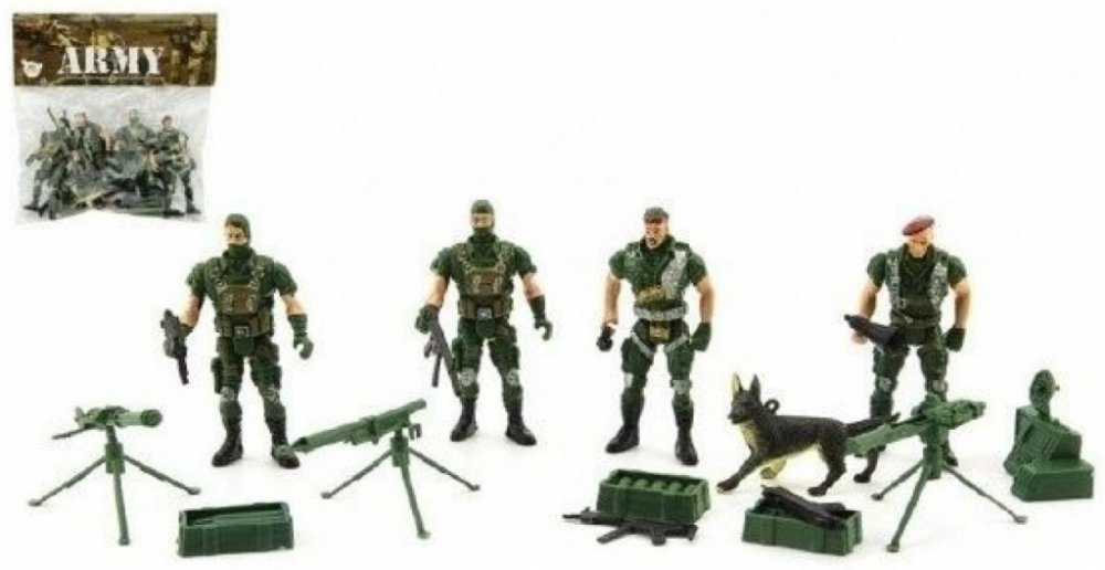 Sada vojáci 4ks s doplňky plast na kartě 18x19,5cm