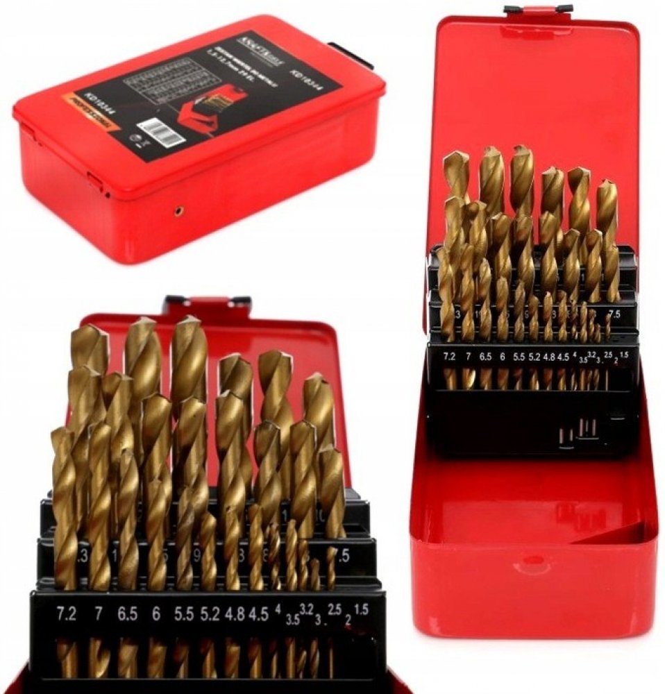 - Rozsah velikostí: Sada obsahuje 29 vrtáků s rozsahem velikostí od 1,5 mm do 12,7 mm. Tento rozsah pokrývá běžné velikosti vrtání do kovu a umožňuje vám vrtat otvory různých průměrů.