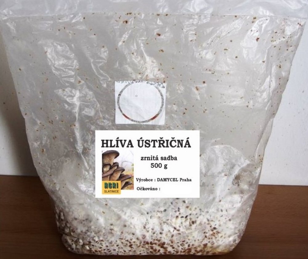 Hlíva ústřičná Pleurotus ostreatus Hlíva ústřičná je jedna z nejznámějších a také nejvíce pěstovaných dřevokazných hub u nás. Její obliba u konzumentů je velká, zejména pro její nezaměnitelné aroma a blahodárné účinky glukanu pleuranu, který zvyšuje odolnost organismu proti virům a brzdí tvorbu a růst některých druhů zhoubných nádorů. Další biologicky aktivní látky snižují obsah cholesterolu v krevním seru. Výrobce : DAMYCEL PRAHA