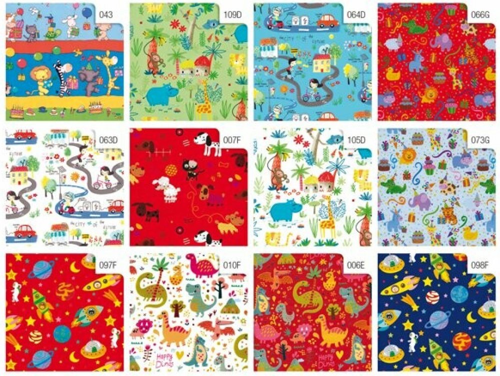 Dárkový balicí papír v dětských motivech a veselých barvách. Baleno v rolích, šířka role 70 cm, délka role 2 m.