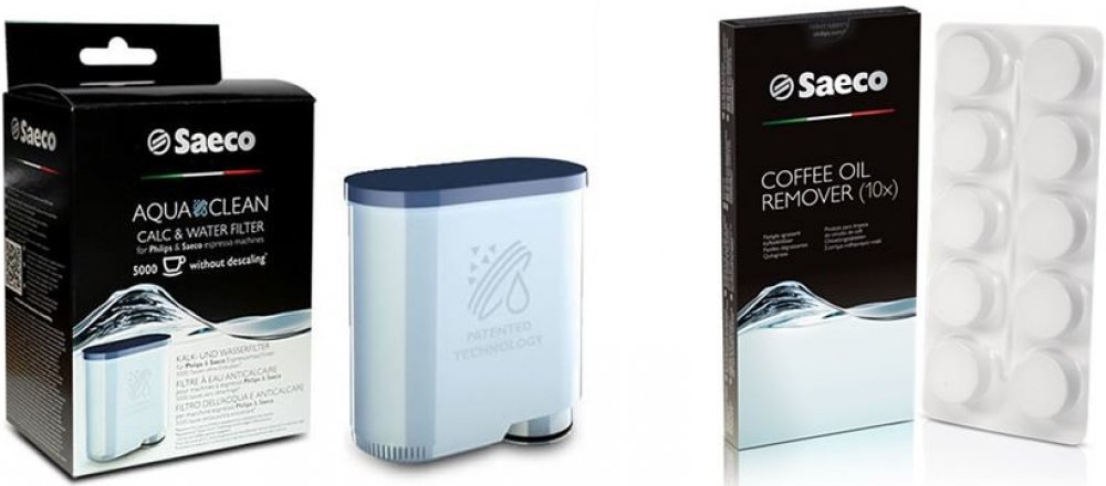 Saeco AquaClean CA6903/00 je filtr na vodu a vodní kámen pro espresovače Saeco. Vodní filtr zlepšuje chuť kávy a odstraňuje z vašeho kávovaru vodní kámen po dobu přípravy 5000 šálků kávy nebo 3 měsíců užívání. Filtr AquaClean odstraňuje vápník díky technologii iontové výměny. Poznámka:• Pokud je přístroj vybaven funkcí AquaClean, uvidíte na nádobě na vodu speciální nálepku.• Přesný popis použití tohoto výrobku naleznete v návodu svého přístroje.• Vodní filtr je pod dvojím výrobním označením Saeco AquaClean CA6903/00 a Philips AquaClean CA6903/10_22. Jedná se však o ten samý výrobek.Saeco CA6704/99 čisticí tablety do spařovací jednotky 10 ks (1,6 g) účinně pročistí varnou jednotku kávovaru a zbaví jej všech mastnost a nečistot. Pravidelné používání tablet přispívá k správnému chodu kávovaru a prodlužuje jeho životnost. K zajištění správné funkčnosti vašeho zařízení je doporučeno provádět sanitaci pomocí tablet Saeco alespoň jednou měsíčně nebo po 250 šálcích kávy. Poznámka:• Přesný popis použití tohoto výrobku naleznete v návodu svého přístroje.