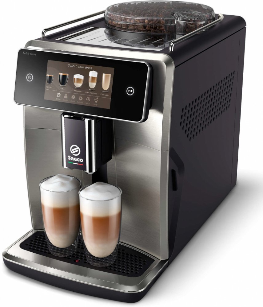 Saeco stříbrná dotykové s integrovanou nádobou na mléko keramické 12 12 kg 39.6 cm 28.7 cm 48.7 cm 600 ml 1 dotykový displej s nádržkou na vodu 8 22