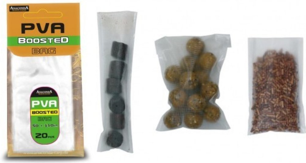 Velmi kvalitní PVA sáčky. Na rozdíl od PVA šňůry se do sáčků vejde mnohem více materiálu. Při styku s vodou se sáček rozpadne a nástraha zůstane v bezprostřední blízkosti nástrahy.