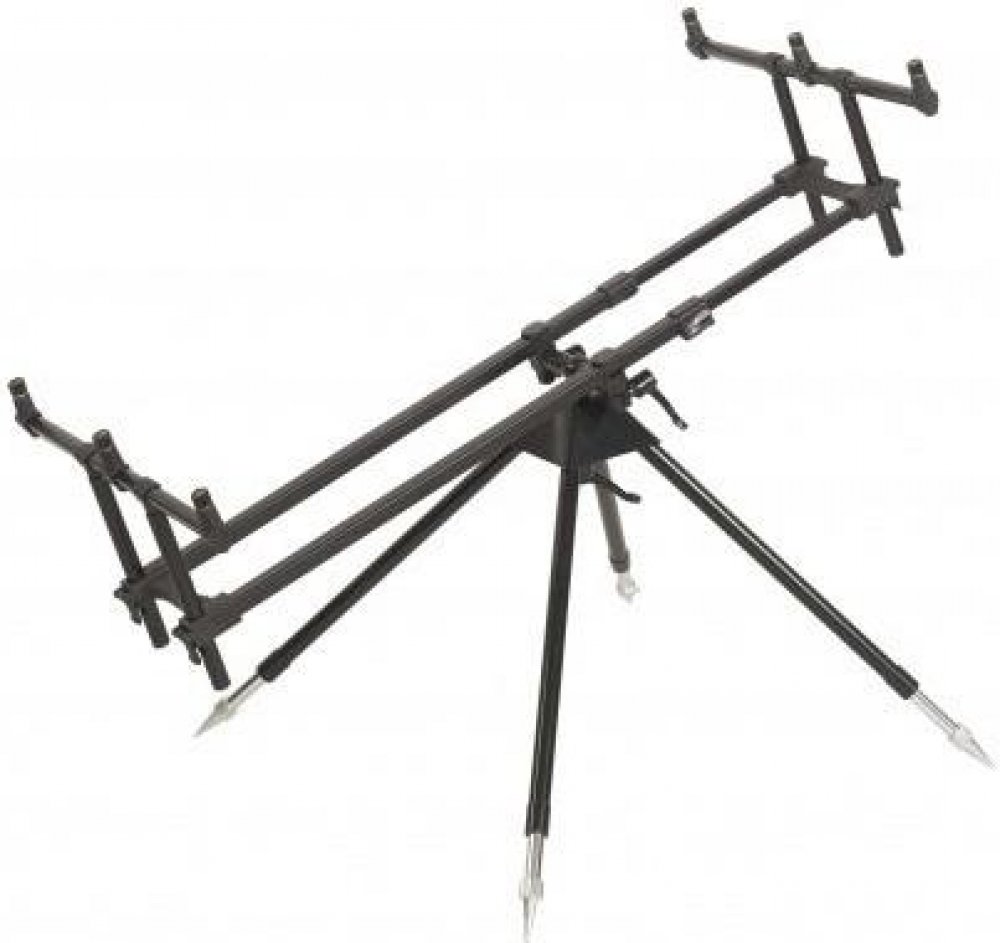 Rybářský stojan za rozumnou cenu. Nabízí pohodlí a maximální stabilitu. Stojan lze otáčet o 360 stupňů, lze upravit jeho sklon a na jeho 43 cm dlouhých ramenech najdeme tři držáky na rohatinky nebo hlásiče záběru.
