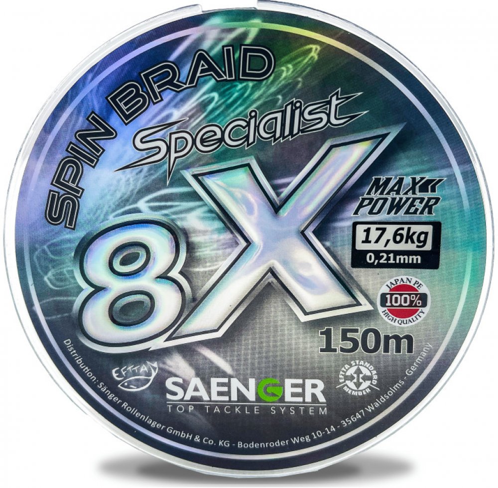 Saenger 8 X Specialist Spin Braid je špičková osmipramenná pletená šňůra, která byla důkladně testována našimi testery a vyrobena nejlepšími světovými specialisty. Před opuštěním výrobního závodu je nosnost počítačově testována a teprve potom je šňůra zařazena do prodeje. Těsné opletení, extrémně měkký a hladký povrch zabraňuje absorbování vody a současně vám umožňuje nahazovat do větší vzdálenost...