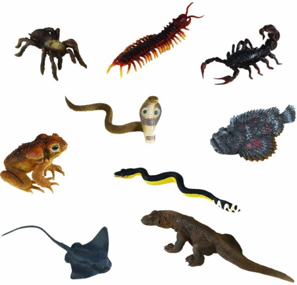 Tuba Jedovatá zvířata obsahuje 9 figurek o velikosti 4-7,5 cm a zahrnuje následující repliky: Ropucha obrovská (Cane Toad), Vodnář d...