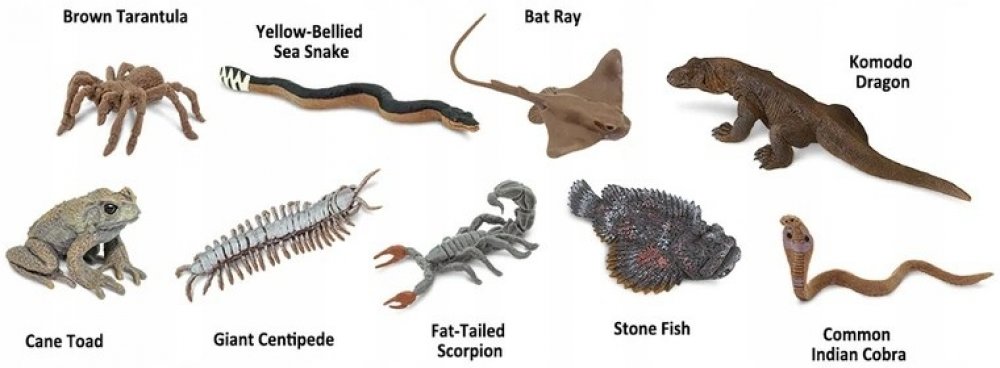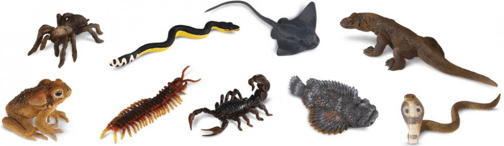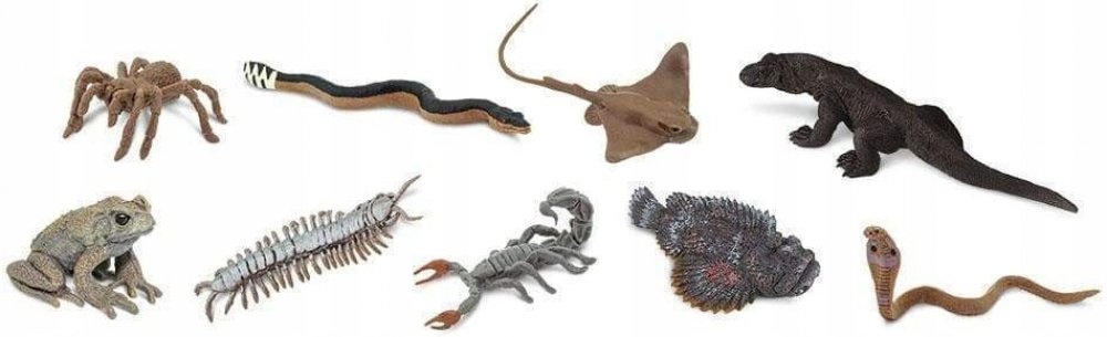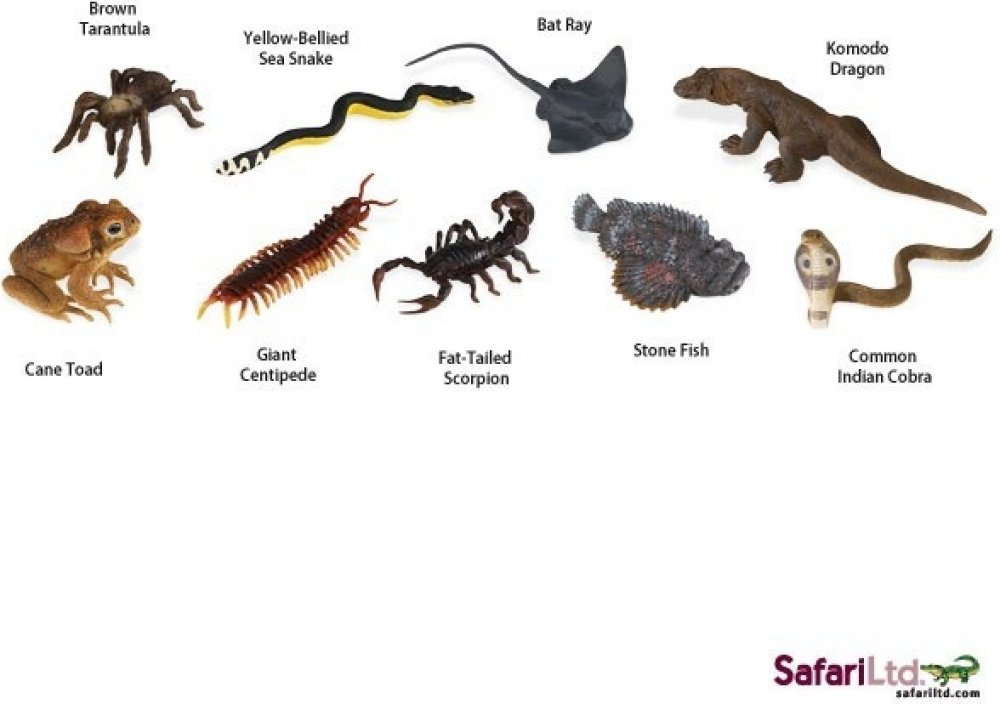 Tuba Jedovatá zvířata obsahuje 9 figurek o velikosti 4-7,5 cm a zahrnuje následující repliky: Ropucha obrovská (Cane Toad), Vodnář dvoubarevný (Yellow-Bellied Snake), Siba kalifornská (Bat Ray), Varan komodský (Komodo Dragon), Tarantule hnědá (Brown Tarantula), Obří stonožka (Giant Centipede), Štír Androctonus (Fat-Tailed Scorpion), Odranec pravý (Stone Fish) a Kobra indická (Indian Cobra).