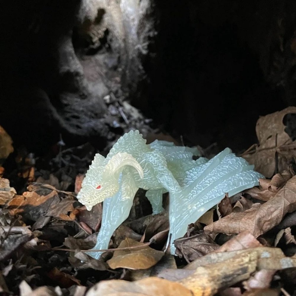 Figurka draka - svítícího ve tmě, připraveného být vám k dispozici pro nápaditou hru i za úplné tmy.