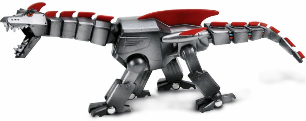 Figurka robotického draka, futuristické postavičky, která vám ukáže, že draci zůstávají silní i v dobách, kdy věda předbíhá fantazii. Tělo má vyrobené z hranatého brnění, které zakrývá skrytou kostru kabelů a drátů, které lze vidět pouze mezi deskami. S kovově stříbrnou barvou, červenýma očima a ploutvemi působí Robot Dragon děsivě. Tato hračka je také kloubová a má pohyblivou čelist, ramena, boky...