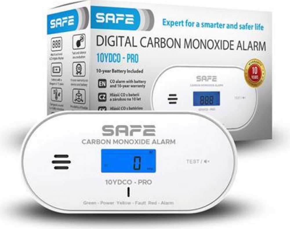 Hlásič oxidu uhelnatého (CO) SAFE 10YDCO - PRO se zárukou 10 let