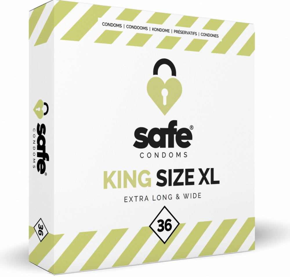 Kondom Safe XL má anatomický tvar a je větší než většina standardních kondomů. Je tedy vhodný pro muže s velikostí XL. Kondomy jsou 20,5 cm dlouhé a mají nominální šířku 6,0 cm.