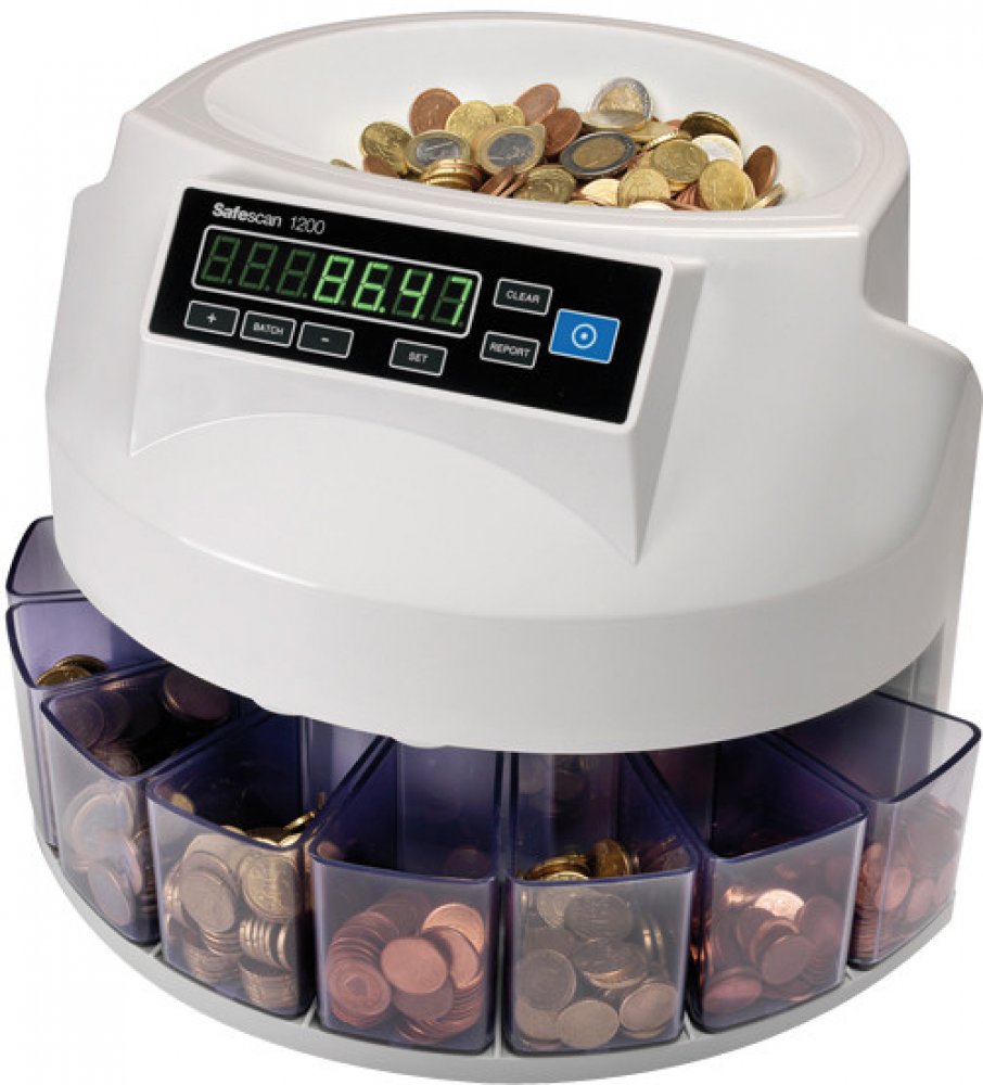 - Počítá a třídí rychlostí 220 ks mincí za minutu