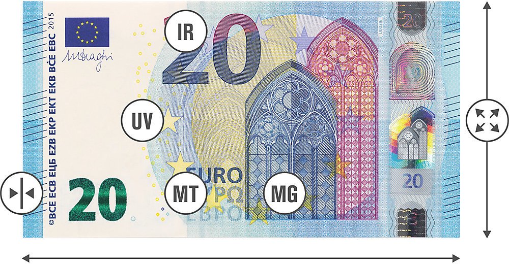 Typy detekce: infračervené vlastnosti bankovek, magnetické a kovové prvky, vodoznak, rozměry, tloušťka a barva