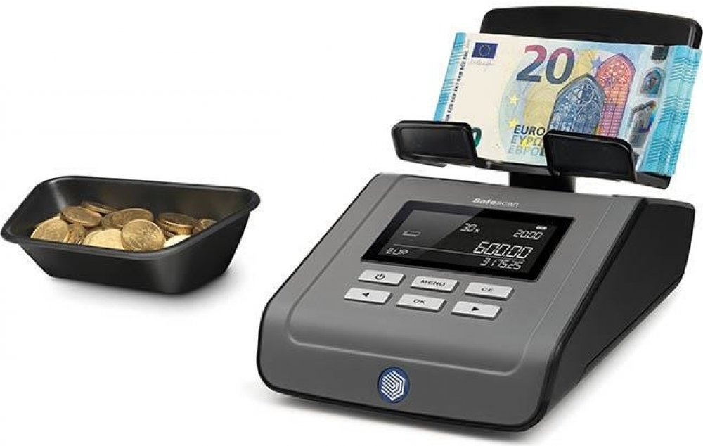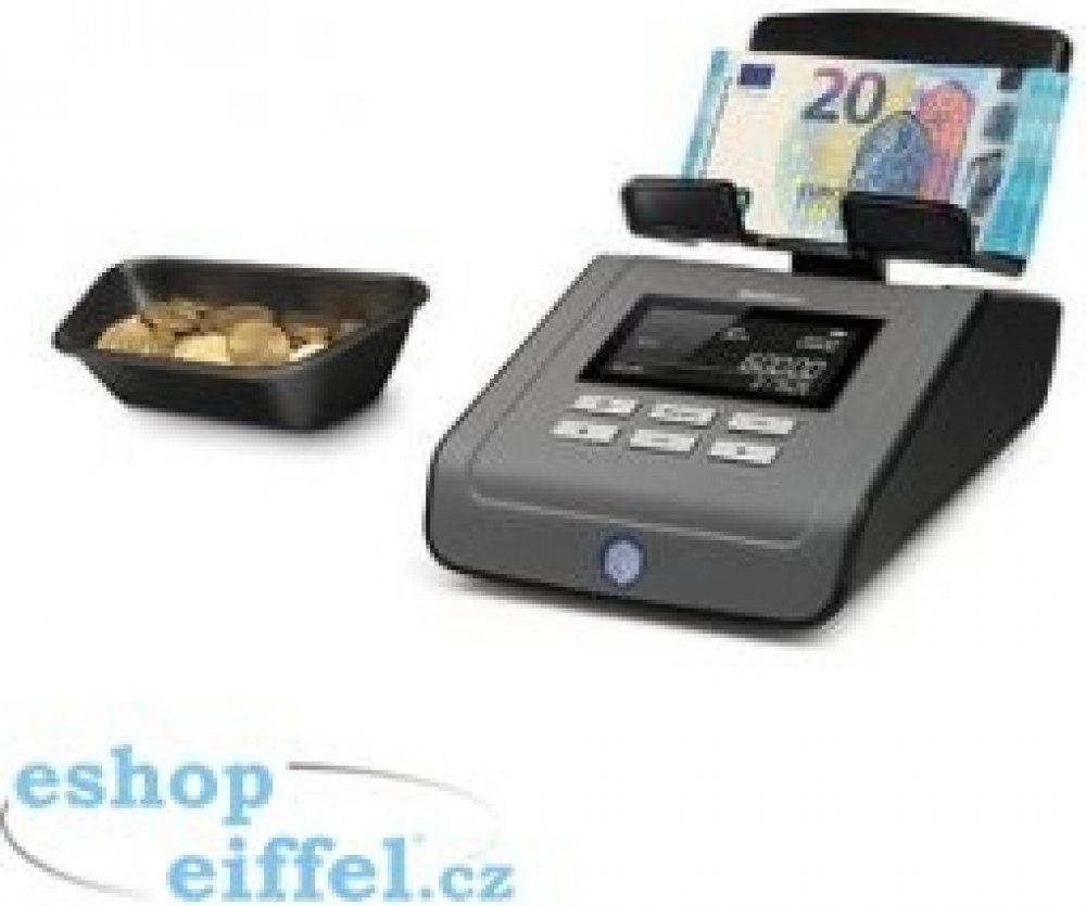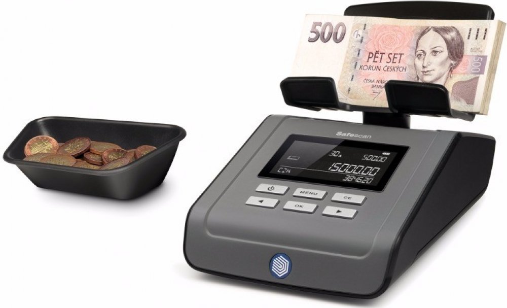 - Počítá mince, bankovky, mincové válce/sáčky, svazky bankovek