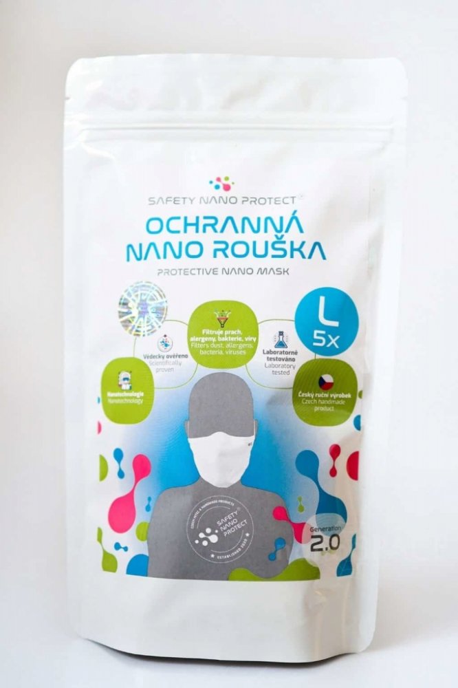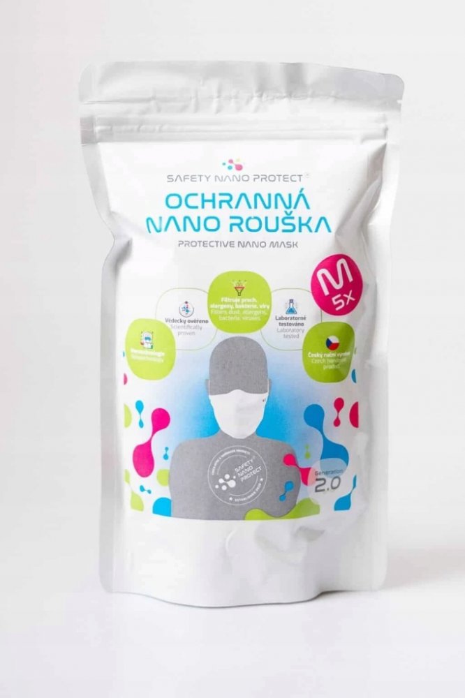 Materiál, ze kterého byla rouška vyrobena, byl testován v laboratoři Nelson Labs v USA.