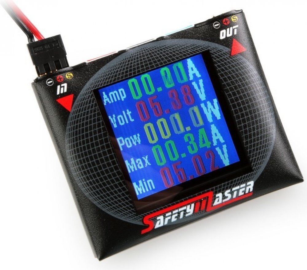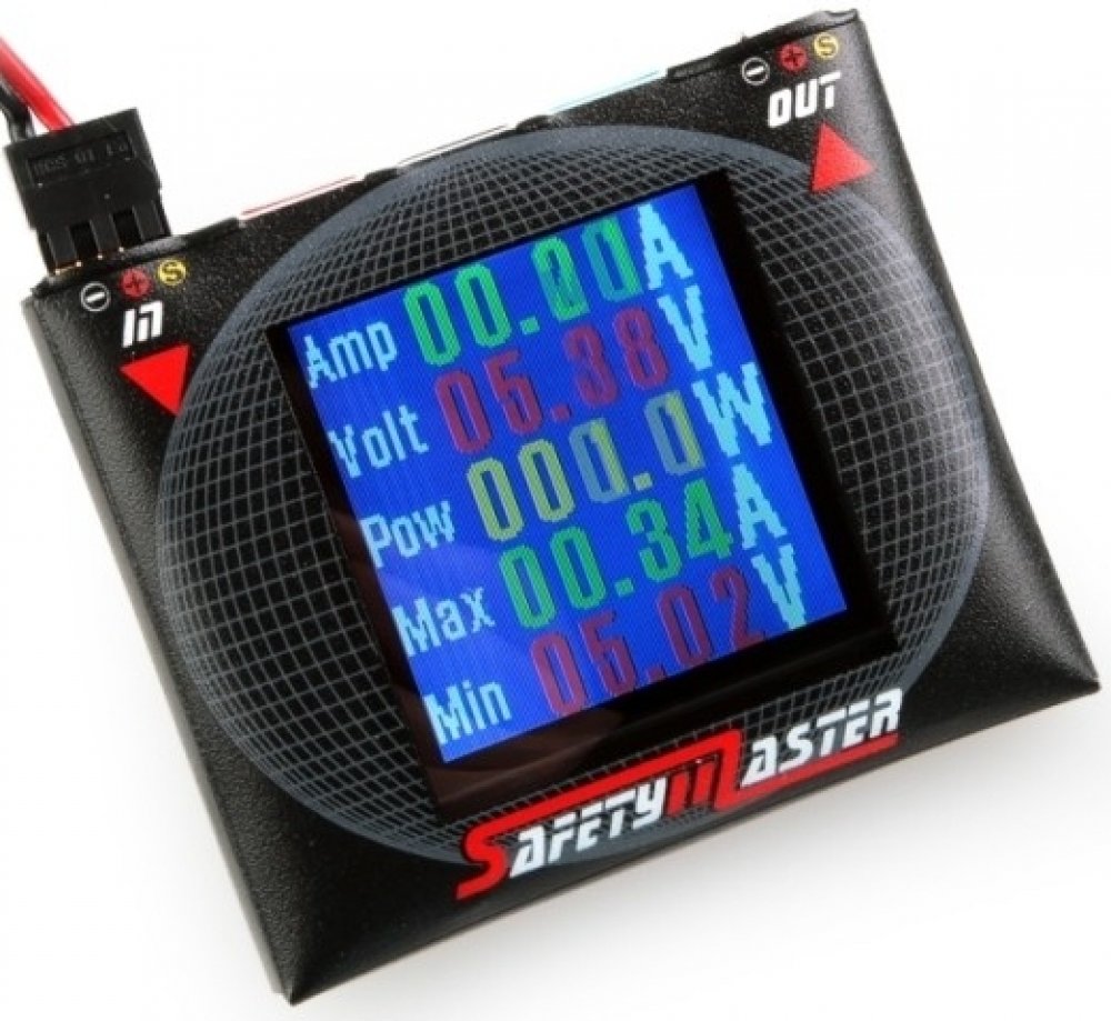 SafetyMaster je unikátní měřící přístroj - wattmetr 0,1-10,0 A s digitálním a grafickým zobrazením - který vám pomůže spolehlivě prověřit, jak kvalitní je systém napájení vašeho RC modelu. "Měkké" akumulátory a "neduživé" BEC stabilizátory jsou často tím "nejslabším článkem" palubní elektroniky a jednou z hlavních příčin havárií. Se SafetyMasterem uvidíte, jak bezpečný je váš systém napájení - dík...