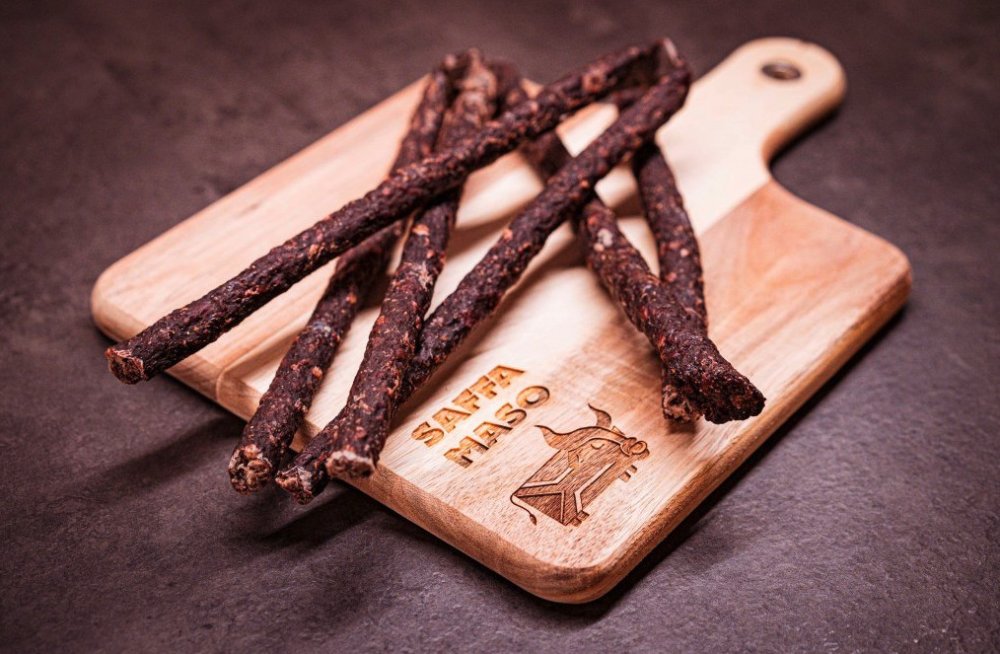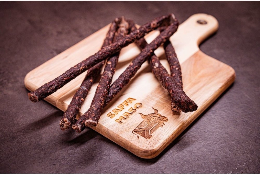 Droëwors – sušené hovězí klobásky, tepelně neopracovaný masný výrobek